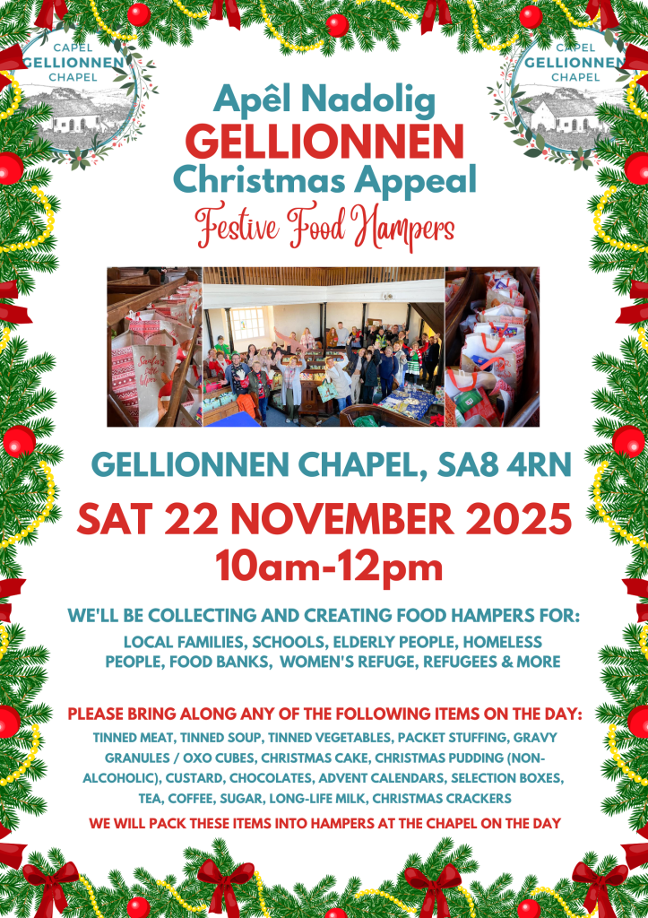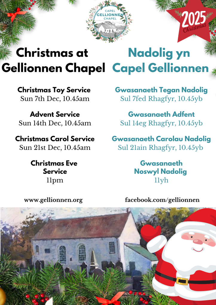 Christmas – Nadolig Christmas at Gellionnen Chapel – Nadolig yn Capel Gellionnen Share this: Click to share on X (Opens in new window) X Click to share on Facebook (Opens in new window) Facebook Like Loading...